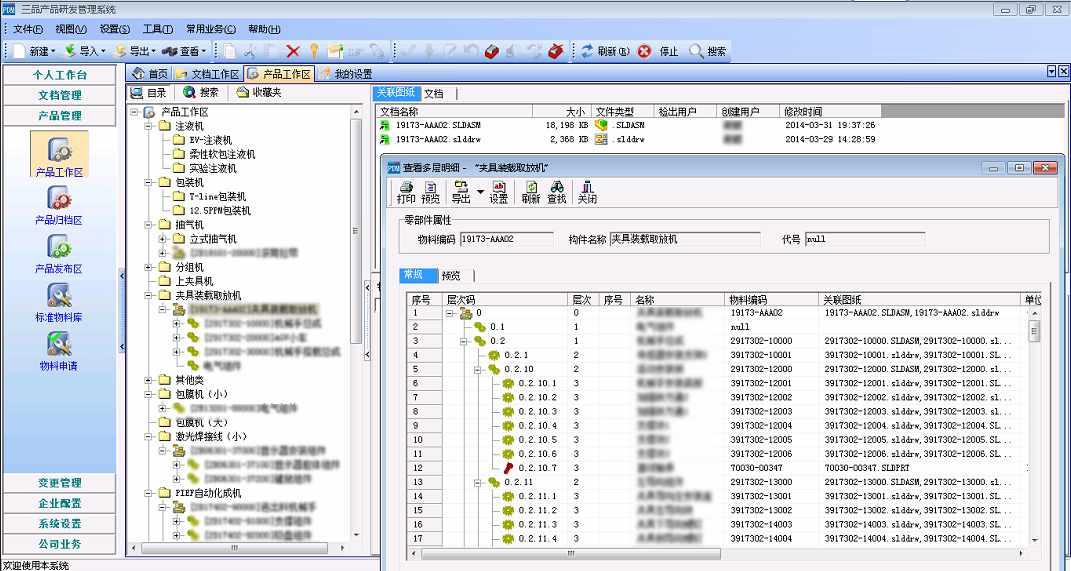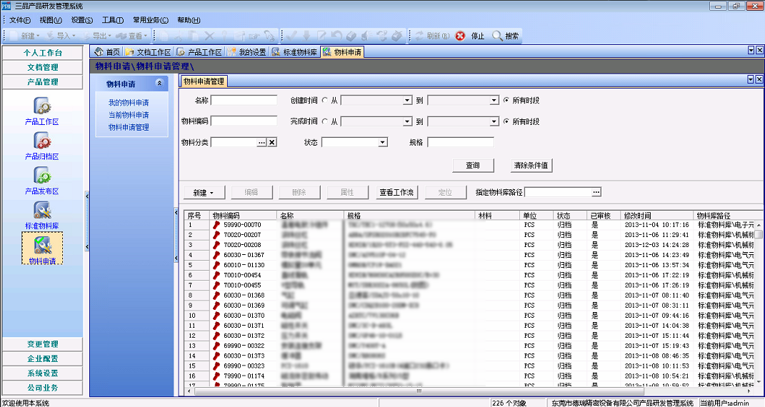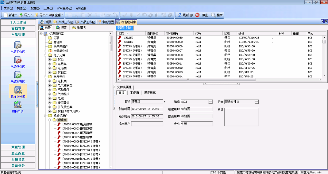 進一步,在三品PDM導入歷史數據,建立了一個企業設計、工程、采購等部門都可以廣泛訪問的標準物料庫和零部件庫。設計人員從物料庫中可以非常方便地查詢和調用各種合規的標準物料,物料的狀態直接識別出這些物料是否能被重用。