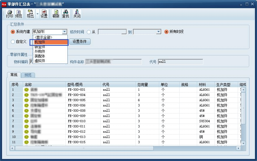 而各類BOM清單則通過產品的裝配結構依據匯總條件快速匯總與輸出(Excel電子表格),如下圖所示: