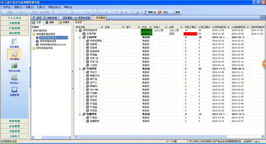 在實施過程中,三品PLM將三和公司的產品研發管理、工藝部門的模具開發管理、集團戰略、售后服務的項目管理、技術部門內部的周計劃管理等一系列活動納入到項目管理模塊中;