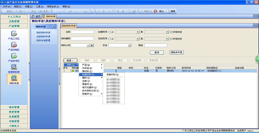 進一步,在三品PLM系統中導入歷史數據,建立了一個企業設計、工程、采購等部門都可以廣泛訪問的標準物料庫和零部件庫。設計人員從物料庫中可以非常方便地查詢和調用各種合規的標準物料,物料的狀態直接識別出這些物料是否能被重用。