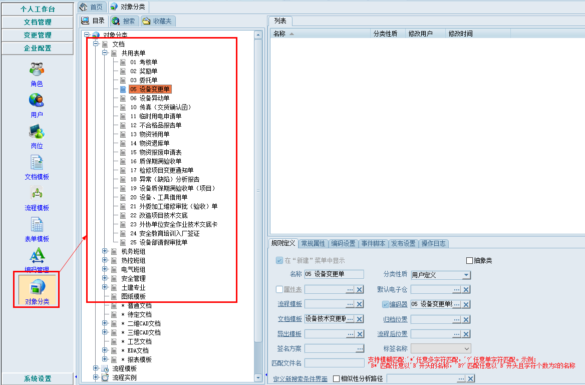 結(jié)合企業(yè)規(guī)范化、標準化管理要求, 在EDM系統(tǒng)內(nèi)定制了各類文件模板,并建立相應(yīng)模板及對象分類,便捷地創(chuàng)建各類規(guī)范的文件資料,同時也方便檢索。