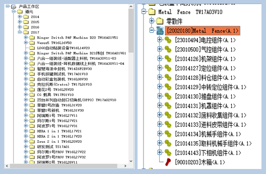 管理好幾十種企業的通用產品系列,形成基于通用產品系列的快速變型設計。設計人員可以即時接觸到最新最全面的技術數據,結束以往設計人員各自為政的局面,設計人員點擊相應的產品BOM即可獲取關聯的設計圖紙進行設計,并可看到各種變更信息和零部件使用情況。