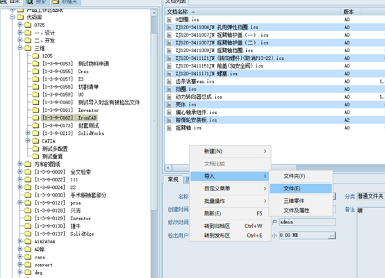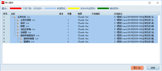 打開文檔工作區(qū),選擇一個文件夾,點導入,從本地選擇一套要導入的總裝文件: