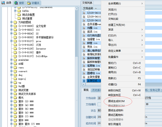 選中剛才導入的總裝文件,右鍵,在彈出的菜單中選擇“圖紙生成BOM”: