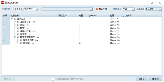 點“生成”完成BOM的生成