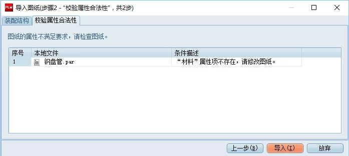示例:不符合規范的圖紙進入PDM系統時系統會提醒