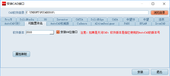 選擇天河CAD的安裝目錄、軟件版本等,點 “安裝”完成接口的安裝。