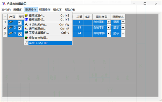 選中所有行,選擇資源操作—“連接PDM/ERP”: