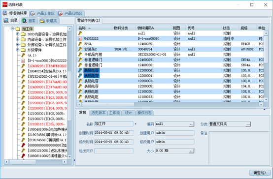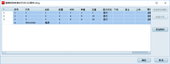 點擊“添加物料”從PDM中選擇物料添加到此明細表中:
