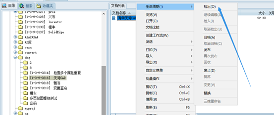 打開文檔工作區(qū),選擇一個天河CAD圖紙文件,右鍵—生命周期--檢出