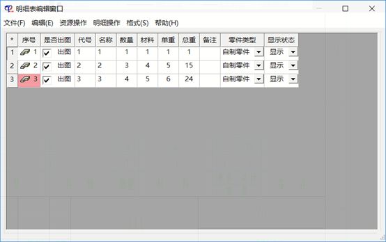 在天河CAD中,編輯明細欄: