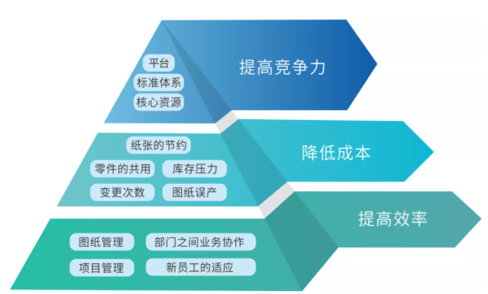 EDM是企業信息化中基礎且重要的一個環節。EDM圖文檔管理系統能為企業帶來的價值,概括起來主要是三個方面:一是避免錯誤、二是提高效率、三是沉淀知識,這三個方面最終體現出來的是成本的降低、創新的促進和企業核心競爭力的提高。