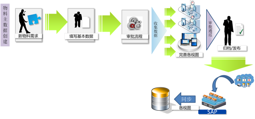 實(shí)現(xiàn)企業(yè)新物料的申請(qǐng)、審批承認(rèn)后,通過(guò)三品PLM傳輸?shù)?span>SAP ERP物料表中,從而作為ERP中可信的、合規(guī)的物料信息;
