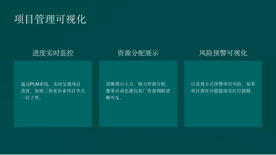 項目管理與監控可視化。三品PLM系統提供項目看板、甘特圖、任務分發與進度跟蹤等功能,幫助管理者實時掌握項目健康度、資源負荷與風險預警。從立項到結案的全過程數據沉淀,也為后續項目估算與流程優化提供依據。