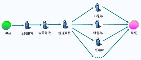 A.利用三品EDM標準版的流程管理引擎,搭建基于“訂單“驅動的業務管理流程,使得訂單合同等核心業務統一到一個流程中完成,訂單下達便捷流暢,各個部門圍繞訂單流程的要求有條不紊地展開工作。企業的訂單業務流程模型: