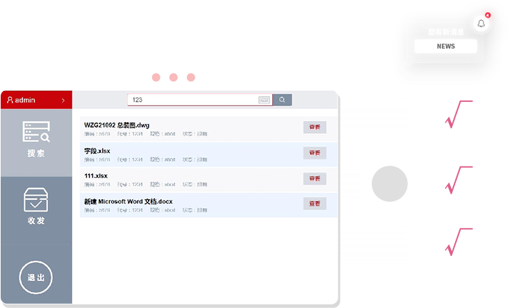電子化的流程審批,可在線瀏覽圖文檔并進行圈紅批閱;高效的電子簽章,實現自動簽名,提高工作效率;實用的收發管理,建立無紙化圖文檔流轉體系。