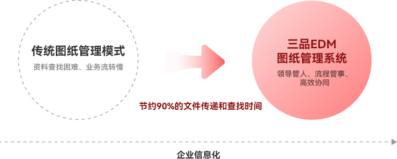 三品EDM企業圖紙文檔管理平臺旨在為企業提供一套完善的圖紙管理及協同辦公平臺,涵蓋了設計研發涉及的圖文檔管理、編碼管理、權限管理、在線審批、變更管理、無紙化、數據安全管理及協同辦公等內容。強大的系統過程管理功能徹底終結圖紙等技術資料管理混亂的現狀,實現圖紙文檔的全生命周期管理,讓企業組織的圖紙文檔管理“井井有條”。簡單易用的協同功能幫助企事業組織實現更高效率的協同工作。